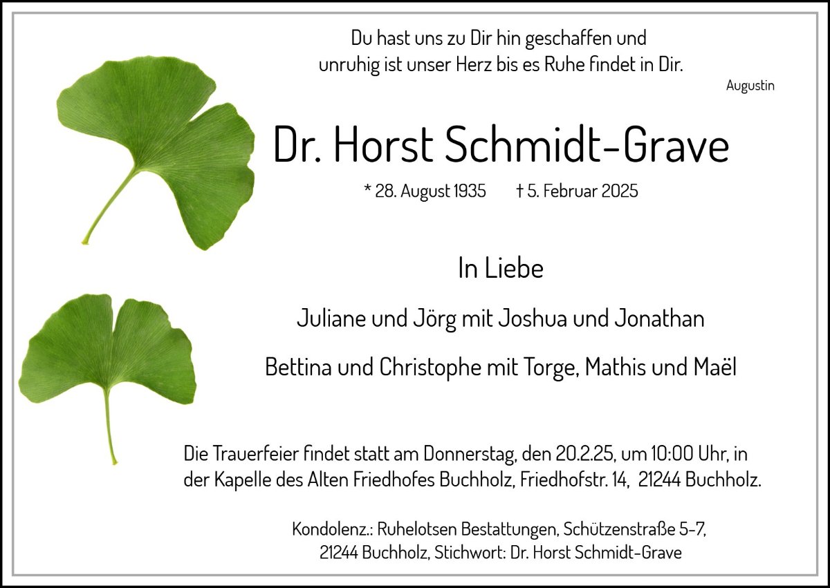 Dr. Horst Schmidt-Gravegestorben am 5. Februar 2025
