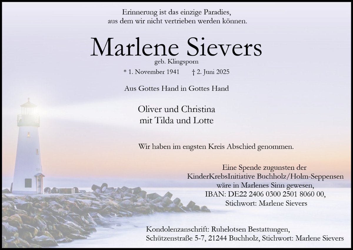 Marlene Sievers geb. Klingsporn