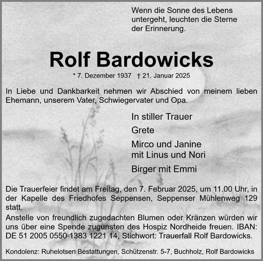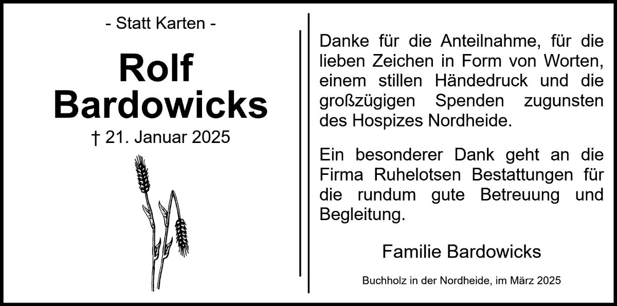 Rolf Bardowicksgestorben am 21. Januar 2025